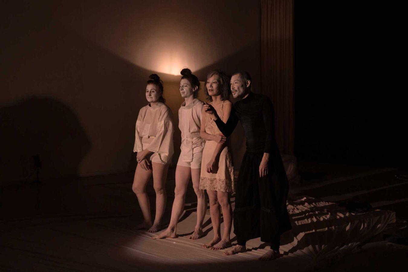 Through the language of Butoh, the performance drifts away from narrative and toward sensation. Bodies, materials, and space merge; stillness grows dense, and the smallest gesture can fill the void. In this heightened present, fragments of memory surface—personal and collective, fragile and unresolved. Echoing the tremors that reshaped northeastern Japan in 2011, the work touches on loss, endurance, and the quiet persistence of what remains. Here, ruin, body, and memory briefly converge, holding time in suspension.