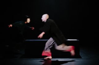 The piece based on Akutagawa's autobiographical novel is a translation of the Japanese language into body movement. Akutagawa was known in Japan at the beginning of the 20th century, later he also received international fame through the film adaptation of his novel "Rashyomon". His sharp-edged and concise language style is taken up by 4RUDE with the classical techniques of Japanese No-Theatre and the body expression of modern Japanese Butoh as "Dance of Darkness" as well as music composed especially for the piece.